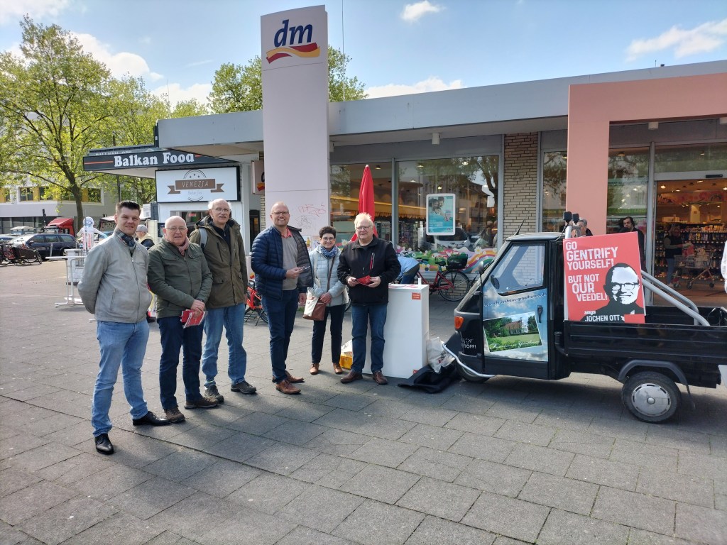 Zum 2. Wahlkampfstand der SPD auf dem Bickendorfer Markt, der sich wieder durch die aktive Beteiligung der Bürger/innen auszeichnete, stellte sich Jochen Ott den Fragen der Bürger und stellte seine neue Plakataktion zum Thema der Gentrifizierung in Richtung Jungwähler vor.