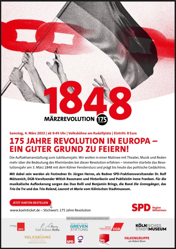 Allgemein 175 Jahre Revolution in Europa – Ein guter Grund zu feiern Verfasst von spdossendorf/bickendorf am 19. Februar 2023 Teilen mit: Klicke, um auf X zu teilen (Wird in neuem Fenster geöffnet) X Klick, um auf Facebook zu teilen (Wird in neuem Fenster geöffnet) Facebook Gefällt mir Wird geladen …