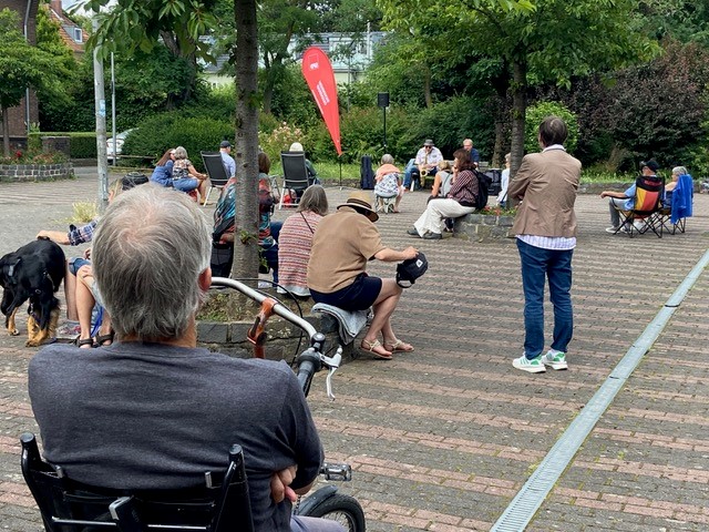 Wieder kamen erfreulich viele Menschen aus dem Veedel vorbei, um den selbst komponierten Stücken der beiden Musiker zu lauschen. Und es blieben auch zahlreiche Passanten stehen, um ebenfalls für einige Minuten der guten Musik bei schönem Sonnenschein zuzuhören.