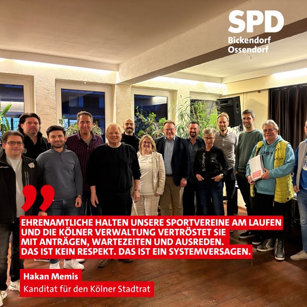 Und dafür kandidieren wir: Udo Hanselmann für die BV Ehrenfeld und Hakan Memis für den Kölner Stadtrat, weil wir wollen, dass unsere Sportvereine mit ihren Herausforderungen gesehen und gehört werden, nicht erst, wenn’s um Medaillen geht, sondern wenn’s um fehlende Hallenzeiten, kaputte Duschen und überforderte Ehrenamtliche geht.