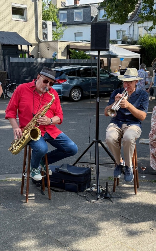 Am Sonntag, 13.07.2025 wurde der Platz vorm Rondellchen zur kleinen Bühne für große Klänge: Bernd Delbrügge und Ebasa Pallada haben Bickendorf mit ihrem Jazz verzaubert: bei bestem Sommerwetter, ein paar Kölsch und vielen tollen Begegnungen.