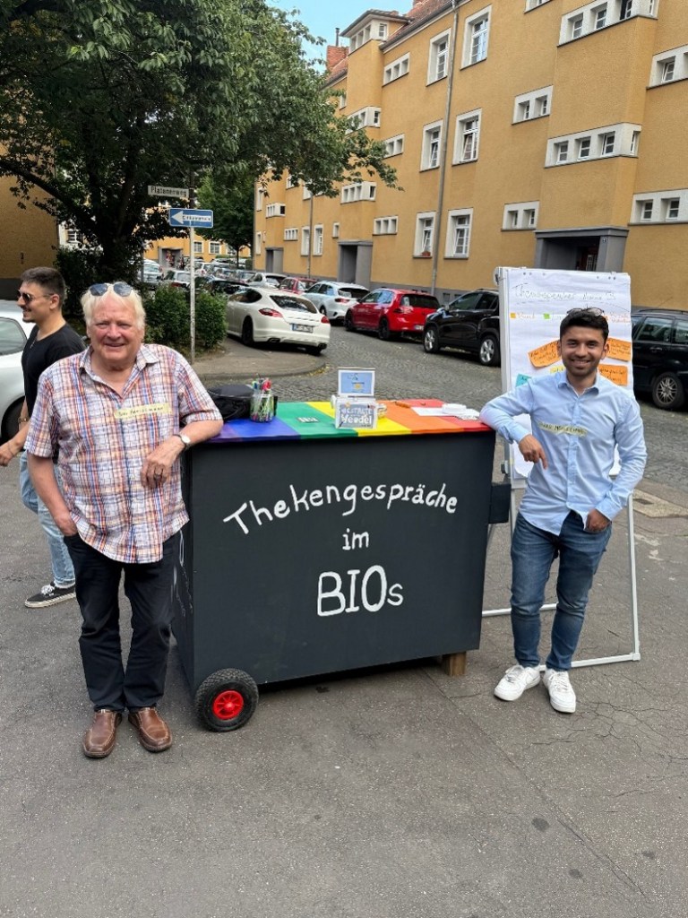 1.) Aktion Nachbarschaft e.V. im Westend: Hier traf Hakan Memis den Vorstandsvorsitzenden Christian Baack. Als jemand, der selbst viele Nachmittage seiner Kindheit im Westend verbracht hat, weiß Hakan um die Herausforderungen, mit denen viele Familien und ältere Menschen hier täglich umgehen müssen.