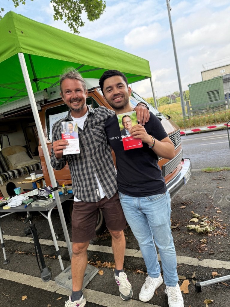Gemeinsam mit unserem OB-Kandidaten Torsten Burmester war unser Ratskandidat Hakan Memis in den Ossendorfer Gartenhöfen unterwegs.