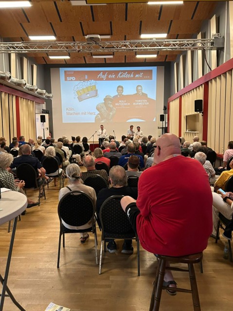 Am Dienstag durfte unser Kandidat für den Rat der Stadt Köln das Bürgergespräch „Auf ein Kölsch mit Dr. Rolf Mützenich und Torsten Burmester“ im Friedrich-Ebert-Saal in Bickendorf moderieren.