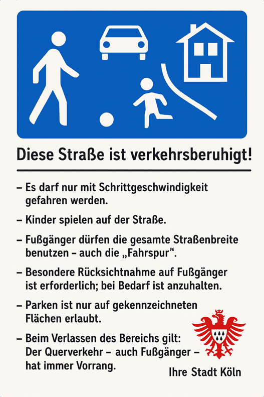 1.) Deutlich größere und klarere Beschilderung des Weißdornwegs als Spielstraße