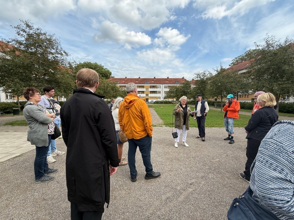 Geführt wurde der Spaziergang von unserer langjährigen Genossin Margrit Jüsten-Mertens und ihrem Ehemann Gunnar Mertens. Mit viel Wissen und Herzblut nahmen sie uns mit auf eine Zeitreise durch unser Veedel. Stationen waren unter anderem die Rosenhofsiedlung und die Gartensiedlung – beide mit ihrer ganz eigenen Geschichte und Bedeutung für das soziale und städtebauliche Gefüge Bickendorfs.